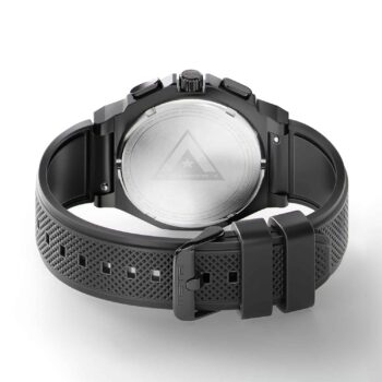 Het Ambassador X heren horloge in Zwart – Dit horloge heeft een meerdelige kast van kunststof en een rubberen band. Deze uitvoering heeft zwarte roestvrijstalen knoppen, kroon en bouten aan de buitenkant en een zwarte wijzerplaat met zwarte accenten aan de binnenkant. Dit horloge wordt aangedreven door een Japans quartz uurwerk van Miyota met een stopwatchfunctie en een 24-uurs klok. De Ambassador X is een sportief en stoer mannen horloge met een diameter van 40mm en een dikte van 11mm. Met een uitgebreide garantie van 2 jaar ben je ook verzekerd van een kwalitatief horloge waar je lang van zult genieten.
