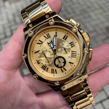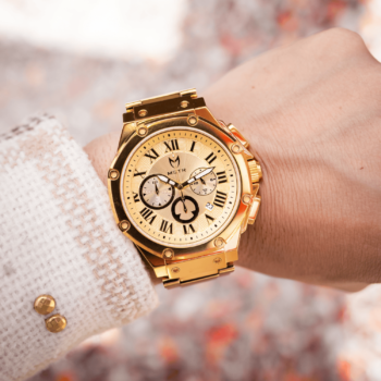 Het Ambassador heren horloge in Polished Goud – Dit horloge is gemaakt van de beste kwaliteit 316L roestvrijstaal, heeft een RVS band met verwijderbare schakels en een vlindersluiting. Het horloge heeft een gepolijste afwerking op de kast en de band. Dit model wordt aangedreven door een Japans quartz uurwerk van Seiko met tijd, datum, stopwatch en 24 uur functie. De wijzerplaat heeft een complimenterende gouden kleur met Romeinse cijfers en lichtgevende wijzers. De Ambassador is een robuust en stoer mannen horloge met een diameter van 45mm en een dikte van 12mm. De Ambassador is ook waterdicht tot 100 meter dus zwemmen met het horloge is geen enkel probleem. Met een uitgebreide garantie van 2 jaar ben je ook verzekerd van een kwalitatief horloge waar je lang van zult genieten.