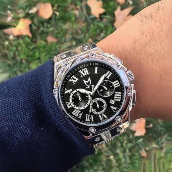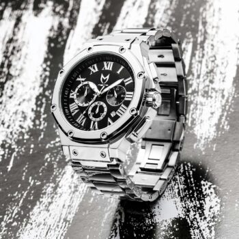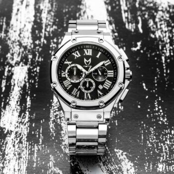 Het Ambassador heren horloge in Polished Zilver – Dit horloge is gemaakt van de beste kwaliteit 316L roestvrijstaal, heeft een RVS band met verwijderbare schakels en een vlindersluiting. Het horloge heeft een gepolijste afwerking op de kast en de band. Dit model wordt aangedreven door een Japans quartz uurwerk van Seiko met tijd, datum, stopwatch en 24 uur functie. De wijzerplaat heeft een complimenterende zwarte kleur met Romeinse cijfers en lichtgevende wijzers. De Ambassador is een robuust en stoer mannen horloge met een diameter van 45mm en een dikte van 12mm. De Ambassador is ook waterdicht tot 100 meter dus zwemmen met het horloge is geen enkel probleem. Met een uitgebreide garantie van 2 jaar ben je ook verzekerd van een kwalitatief horloge waar je lang van zult genieten.