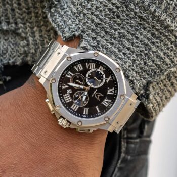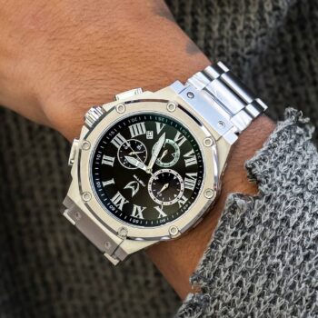 Het Ambassador heren horloge in Zilver – Dit horloge is gemaakt van de beste kwaliteit 316L roestvrijstaal, heeft een RVS band met verwijderbare schakels en een vlindersluiting. Het horloge heeft een geborstelde afwerking op de kast en de band. Dit model wordt aangedreven door een Japans quartz uurwerk van Seiko met tijd, datum, stopwatch en 24 uur functie. De wijzerplaat heeft een complimenterende zwarte kleur met Romeinse cijfers en lichtgevende wijzers. De Ambassador is een robuust en stoer mannen horloge met een diameter van 45mm en een dikte van 12mm. De Ambassador is ook waterdicht tot 100 meter dus zwemmen met het horloge is geen enkel probleem. Met een uitgebreide garantie van 2 jaar ben je ook verzekerd van een kwalitatief horloge waar je lang van zult genieten.