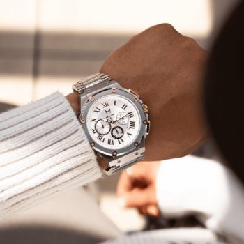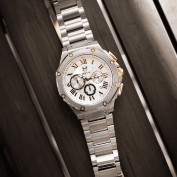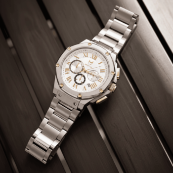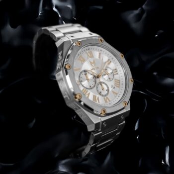 Het Ambassador heren horloge in Zilver & Goud – Dit horloge is gemaakt van de beste kwaliteit 316L roestvrijstaal, heeft een RVS band met verwijderbare schakels en een vlindersluiting. Het horloge heeft een geborstelde afwerking op de kast en de band. Dit model wordt aangedreven door een Japans quartz uurwerk van Seiko met tijd, datum, stopwatch en 24 uur functie. De wijzerplaat heeft een complimenterende zilveren kleur met Romeinse cijfers en lichtgevende wijzers. De Ambassador is een robuust en stoer mannen horloge met een diameter van 45mm en een dikte van 12mm. De Ambassador is ook waterdicht tot 100 meter dus zwemmen met het horloge is geen enkel probleem. Met een uitgebreide garantie van 2 jaar ben je ook verzekerd van een kwalitatief horloge waar je lang van zult genieten.