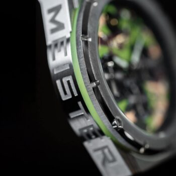 De nieuwe MKV, een evolutie in de MK-Serie. De nieuwe kast is nu 11 mm dik met een kleinere bezel van 42 mm. We hebben ook de bezel gewijzigd, de inkepingen veranderd en het totale aantal bouten teruggebracht naar drie. Daarnaast hebben we een gekleurd inzetstuk met bouten toegevoegd om nog meer kleur en visuele interesse aan de vorm toe te voegen. Deze nieuwe kast is gemakkelijk verwisselbaar en kan worden voorzien van onze 316 stalen band, rubberen of leren band. Uitgerust met een Japans 6-hand chronograaf uurwerk met een 60-minuten stopwatch en datum functies. De nieuwe MKV horloges zijn waterdicht tot 100 meter.