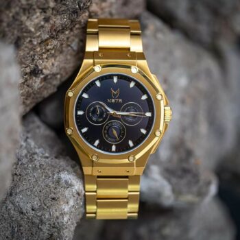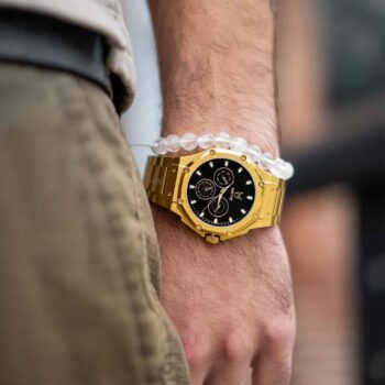 Het Ambassador Slim heren horloge in Goud – Dit horloge is gemaakt van de beste kwaliteit 316L roestvrijstaal, heeft een RVS band met verwijderbare schakels en een vlindersluiting. Het horloge heeft een geborstelde afwerking op de kast en de band. Dit model wordt aangedreven door een Japans quartz uurwerk van Seiko met tijd, datum en dag functie. De wijzerplaat is zwart van kleur, en heeft complimenterende gouden accenten. De uurmarkeringen en wijzers zijn licht reflecterend . De Ambassador Slim is een compact en stoer mannen horloge met een diameter van 41mm en een dikte van 8mm. De Ambassador Slim is ook waterdicht tot 100 meter dus zwemmen met het horloge is geen enkel probleem. Met een uitgebreide garantie van 2 jaar ben je ook verzekerd van een kwalitatief horloge waar je lang van zult genieten.